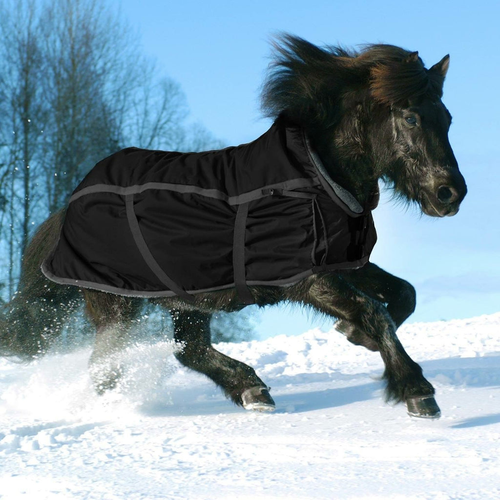 Smedby er svört vetra ábreiða með gráu vattfóðri til notkun utandyra.